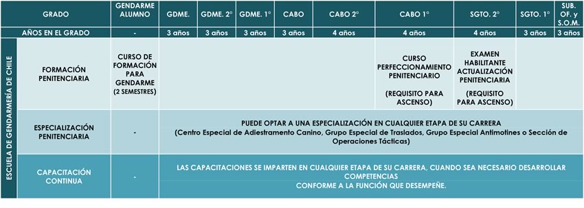 Dentro de estas actividades de apresto, se realizan visitas a Unidades Penales, tanto del sistema tradicional como del concesionado, las cuales les permiten contrastar los distintos escenarios e interiorizarse del quehacer penitenciario.
